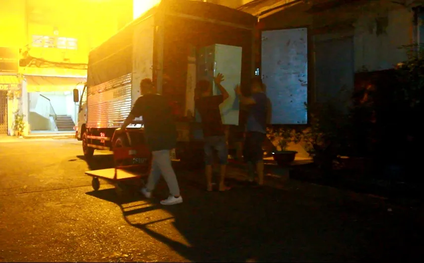 Một số hộ dân hối hả dọn đồ di tản ngay trong đêm. Ảnh: Hải Long.