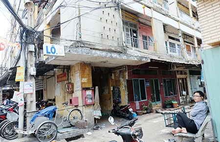 Theo kết quả kiểm định từ năm 2005 thì chất lượng chung cư Cô Giang chỉ còn lại 50%, có thể sụp đổ bất cứ khi nào. Ảnh: VIỆT HOA