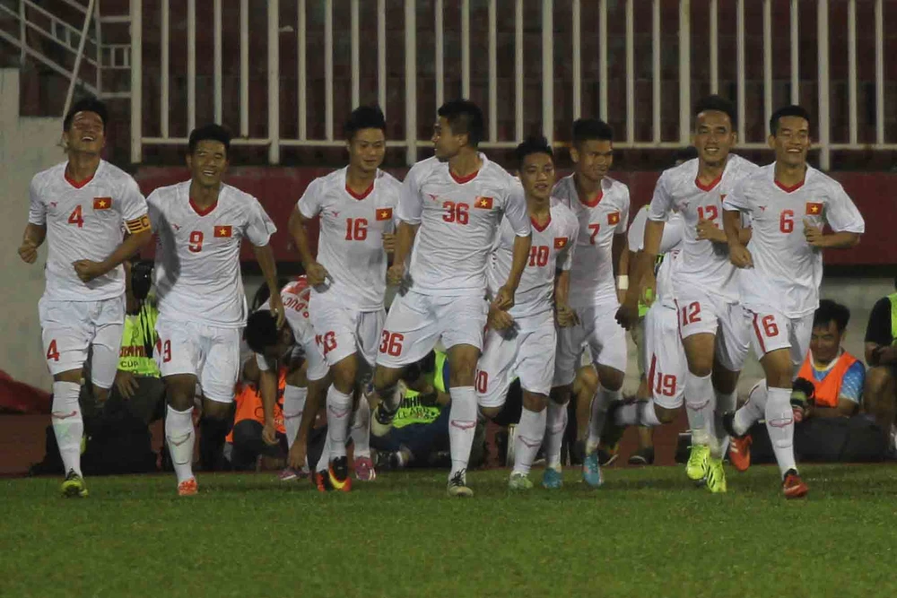 U-21 Thái Lan ăn mừng chiến thắng và vào chung kết. Ảnh: Phạm Huy