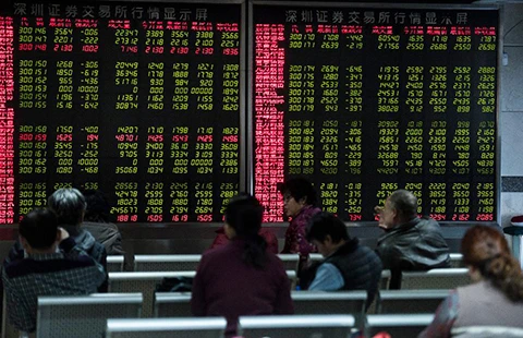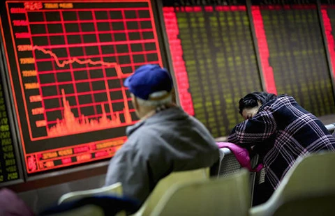 Chứng khoán TQ ngập sắc đỏ trong ngày giao dịch đầu năm 4-1. Ảnh: AP