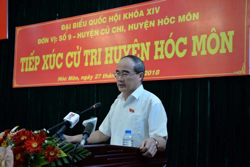 Bí thư Thành ủy tại buổi tiếp xúc cử tri. Ảnh: T.LÂM