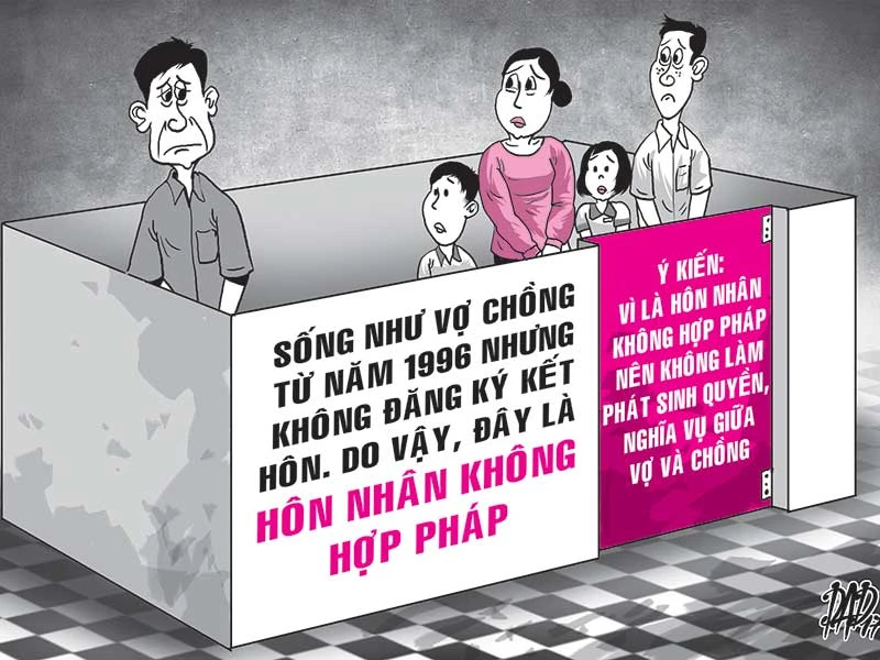 Tại phiên xử sơ thẩm mới đây, TAND huyện Sông Hinh nhận thấy anh S. và chị N. chung sống với nhau từ năm 1996 trên cơ sở tự nguyện, có tổ chức đám cưới theo phong tục tập quán địa phương. Tuy nhiên, từ đó đến nay họ không đăng ký kết hôn. Do vậy hôn nhân của họ là hôn nhân không hợp pháp, không được Nhà nước thừa nhận.