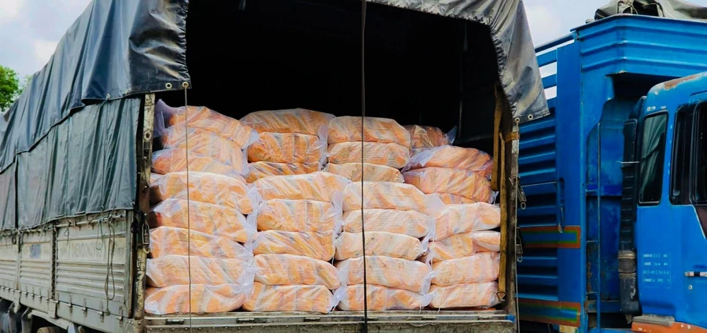 Những phần quà được bàn giao tại Cửa khẩu Quốc tế Xa Mát, huyện Tân Biên (tỉnh Tây Ninh). Ảnh: NN