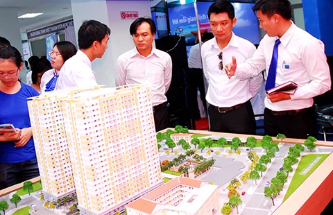 Khách hàng đang tìm mua căn hộ tại một dự án ở TP.HCM. Ảnh: HTD