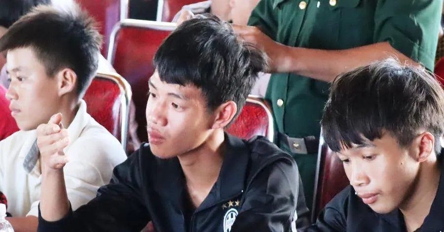 Ngư dân "nhí" Trần Văn Cường (16 tuổi), Lê Văn Chiến (18 tuổi), Ngô Sỹ Xô (19 tuổi) rưng rưng khi nói về hai người đang mất tích trên biển.