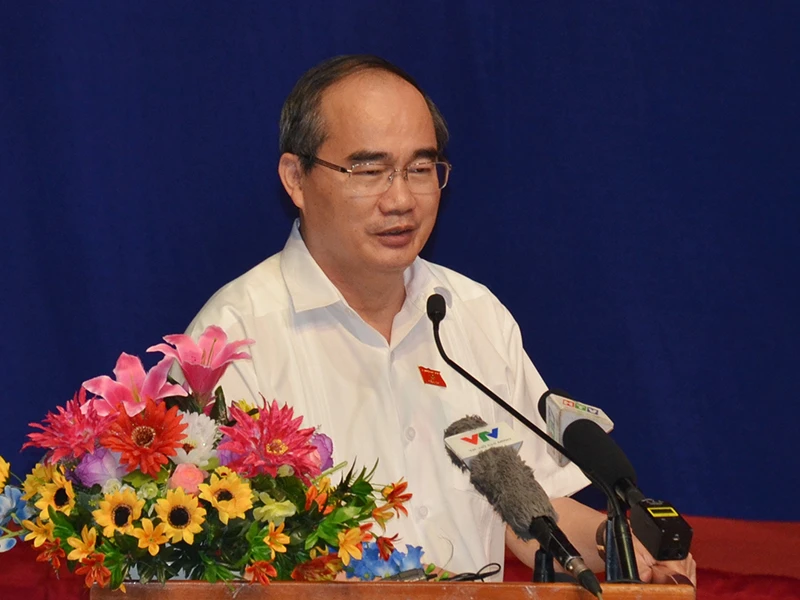 Một cử tri nhắc lại chỉ đạo của Bí thư Nguyễn Thiện Nhân hết quý II-2018 sẽ xử lý dứt điểm vấn đề Thủ Thiêm. Ông Nhân giải thích khi đó TP muốn giải quyết dứt điểm những vụ việc bà con bức xúc, trong đó có vấn đề Thủ Thiêm, vì theo kế hoạch dự kiến đến tháng 4 là Thanh tra Chính phủ có kết luận sai phạm rồi. Bắt tay vào làm liền để tháng 6 là xong nhưng thanh tra đến tháng 4 vẫn chưa xong. “Vừa rồi Thủ tướng đã kết luận ngày 15-7 phải làm xong. Nhưng chúng tôi không đợi đến 15-7 đâu, ngay bây giờ không để người dân phải ở khu tạm cư nữa” - ông Nhân nói.