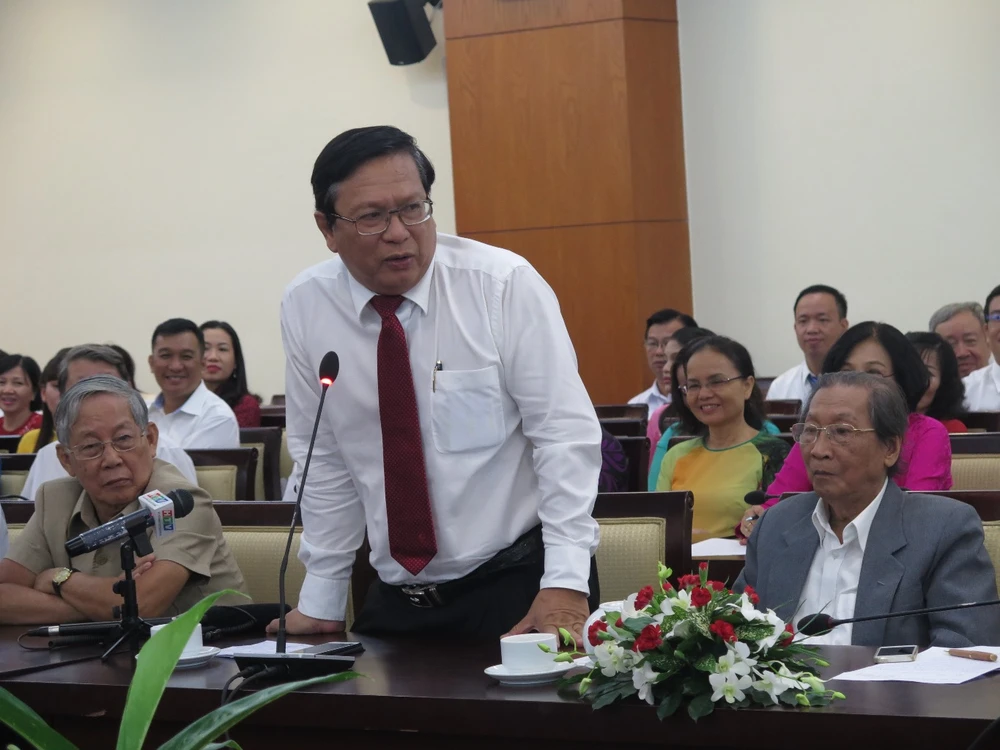 PGS-TS Võ Văn Sen chia sẻ ý kiến tại buổi gặp gỡ. Ảnh: PHẠM ANH
