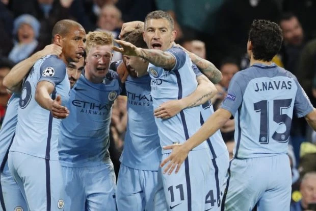 Man. City vui mừng khi đánh bại Barcelona.