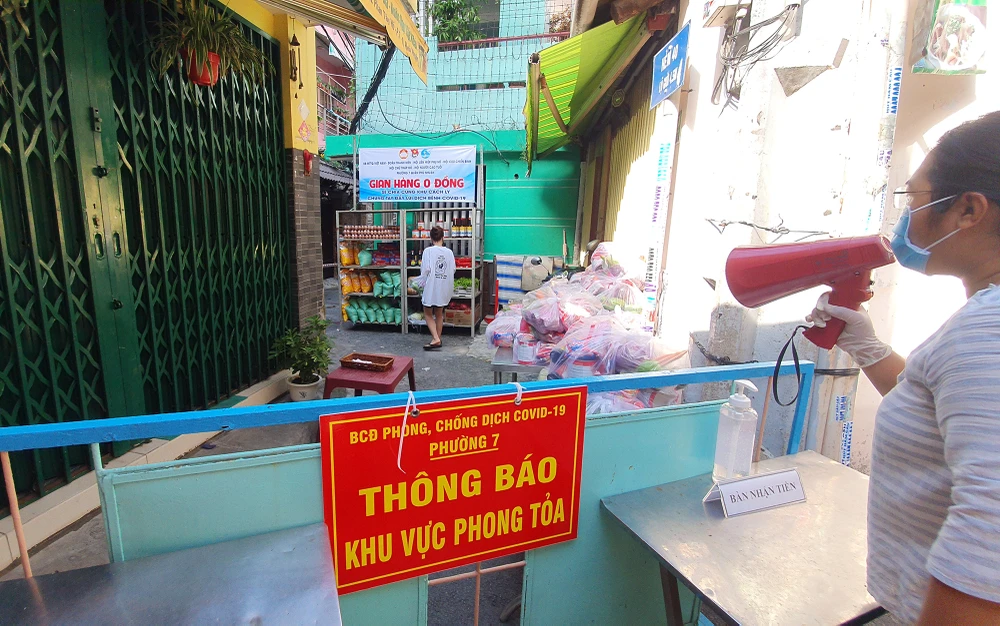 Khu vực hẻm 40 Phan Tây Hồ bị phong toả từ ngày 16-6 đến 7 giờ sáng ngày 30-6. Hẻm này có 50 hộ dân, đã được tổ chức 4 lần gian hàng 0 đồng từ thời điểm bị phong toả đến nay. Việc giao hàng, nhận thực phẩm được đảm bảo giãn cách và phòng dịch tối đa.