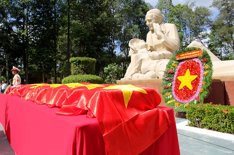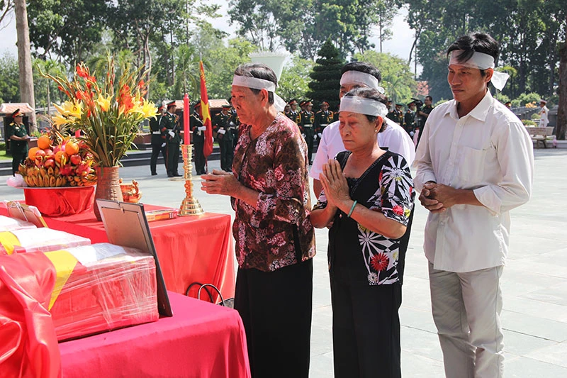 Trong không khí trang nghiêm và xúc động, lãnh đạo TP, cán bộ, chiến sĩ các đơn vị cùng cán bộ, nhân dân huyện Củ Chi, thân nhân các liệt sĩ đã dâng hương, đặt vòng hoa bày tỏ lòng kính trọng và biết ơn sâu sắc trước vong linh các anh hùng liệt sĩ, đưa các anh về nơi yên nghỉ.