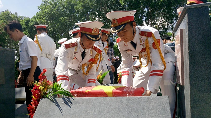 Hài cốt các liệt sĩ được đặt vào phần mộ. Ảnh: HOÀNG GIANG