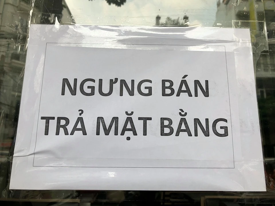 Món Huế dán thông báo "Ngưng bán. Trả mặt bằng" tại chi nhánh Món Huế trên đường Cao Thắng (quận 3, TP.HCM). Ảnh: T.Hà