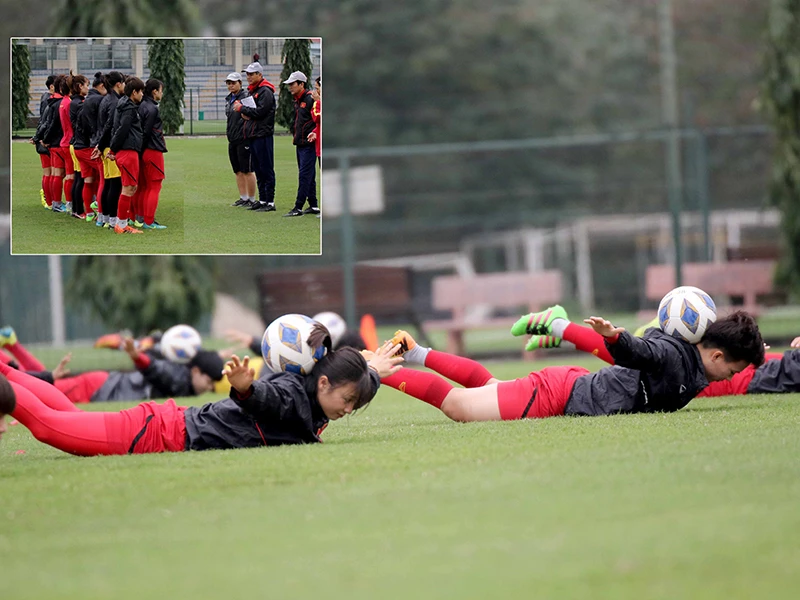 | Tuyển nữ Việt Nam phòng dịch COVID-19 HLV Mai Đức Chung cho biết ông luôn nhắc nhở toàn đội giữ gìn sức khỏe, đặc biệt là các biện pháp phòng tránh dịch COVID-19 đang diễn biến phức tạp bằng cách thường xuyên mang khẩu trang và rửa tay sát khuẩn. Tuyển nữ Việt Nam rất thận trọng như đã từng làm khi thi đấu vòng bảng ở Hàn Quốc nên có sự chuẩn bị từ trước và tiêm phòng dịch bệnh. Về đối thủ lớn Úc sắp sửa đá play off, ông Chung thẳng thắn: “Tôi đã nói rõ với các cầu thủ sẽ chơi phòng ngự phản công từ nửa sân nhà, áp sát không cho đối phương có bóng thoải mái. Các cầu thủ phải tích cực rèn luyện thể lực mới có thể đeo bám đối phương. Chúng tôi muốn người hâm mộ hiểu và thông cảm, khi so sánh về chuyên môn, tuyển nữ thua đối phương rất nhiều. Dù vậy, chúng tôi sẽ thi đấu với tinh thần quyết tâm cao nhất”. Đội tuyển nữ Việt Nam sẽ duy trì hai buổi tập sáng và chiều trong hai tuần, cùng một số trận giao hữu, trong đó có một đội bóng nam gồm nhiều cựu cầu thủ từng tham dự SEA Games 2003. |