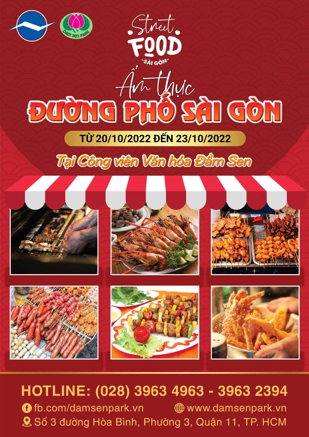 Từ ngày 20-10-2022 – 23-10-2022, Công ty Cổ phần Dịch vụ Du lịch Phú Thọ (Phú Thọ Tourist) tổ chức chương trình “Ẩm thực đường phố Sài Gòn” tại Công viên văn hóa Đầm Sen quy tụ gần một trăm món ăn hấp dẫn hứa hẹn sẽ làm thỏa lòng các tín đồ ẩm thực.