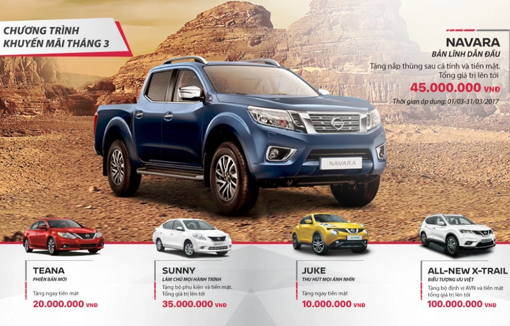 Khuyến mãi dành cho tất cả mẫu xe hiện có của Nissan.