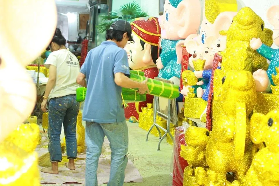 Để kịp giao hàng cho khách, các công nhận tất bật hoàn thiện, làm cả ngày lẫn đêm. Một nhân viên tại cơ sở này cho biết tùy vào kích thước của sản phẩm mà thời gian hoàn thiện khác nhau. Trung bình mất 2-3 giờ cho một con chuột hoặc sản phẩm khác như tượng Di lặc loại nhỏ và vừa. Đối với loại lớn cao 1-2 m thì mất cả ngày thậm chí là vài ngày mới có thể hoàn thành.