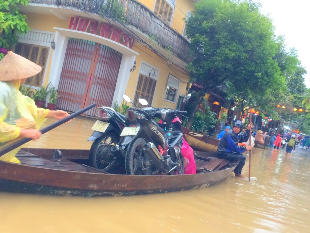 Theo ghi nhận của PV, vào chiều 15-12, tại một số tuyến đường ở TP Hội An đã ngập chìm trong lũ. Người dân cho biết trong những ngày vừa qua Hội An liên tiếp đón ba trận lũ lớn, nước tràn vào hàng quán. Các tuyến đường như Bạch Đằng, Lê Lợi, đoạn Hùng Vương và quảng trường Sông Hoài chìm trong lũ 1-1,5 m.