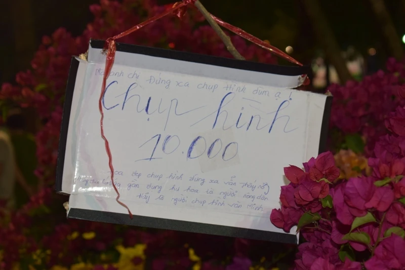 Dạo quanh Hội hoa xuân, thi thoảng chúng tôi lại bắt gặp những tấm biển tương tự: “Chụp hình 5.000 đồng, chụp hình 10.000 đồng”. Đi qua những tấm biển này, không ít người lắc đầu chỉ trỏ. Nhưng thực tế khi hỏi chuyện, chủ vườn và người bán cho biết việc treo biển chỉ để nhắc nhở mọi người có ý thức hơn khi chụp hình.