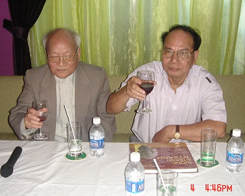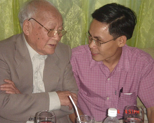 Nhà văn Tô Hoài cùng bạn văn nhà văn Đoàn Minh Tuấn- Ảnh N.TÝ