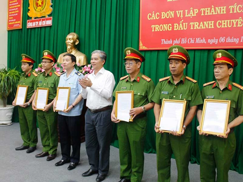 Lãnh đạo UBND TP.HCM khen thưởng lực lượng phá án. Ảnh: TIẾN TÂN