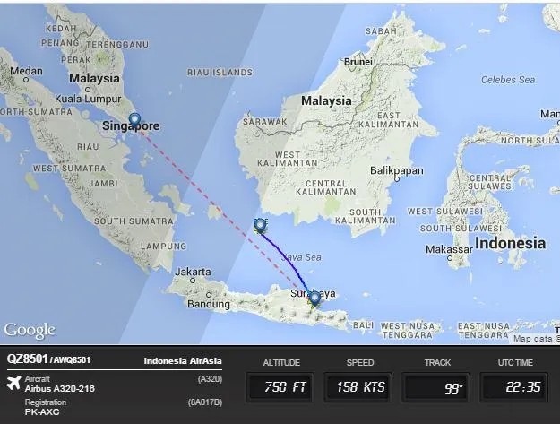 Đường bay dự kiến của chiếc QZ8501