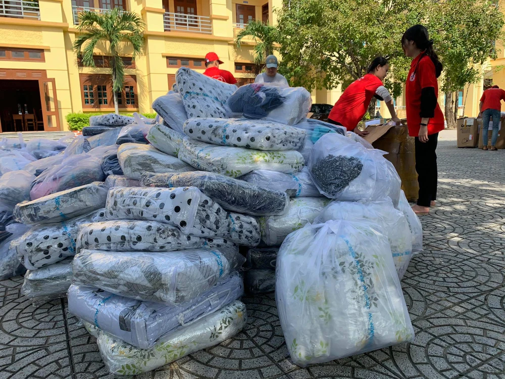 Chuyến hàng hỗ trợ bà con đã có mặt ở Quảng Bình sáng nay. Ảnh: QUỲNH TRANG