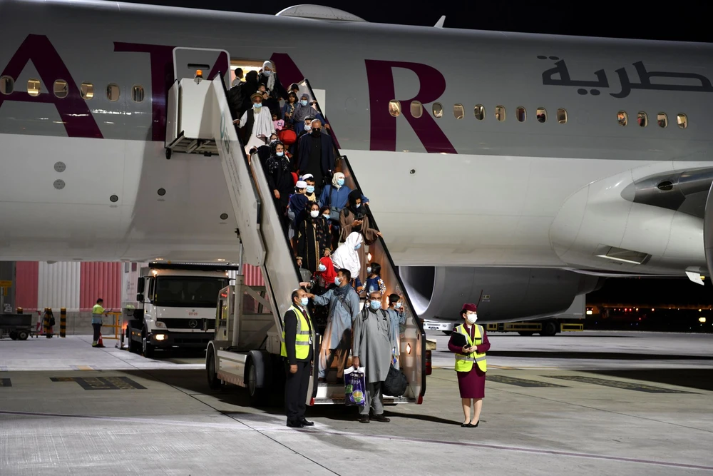 Hành khách đáp xuống sân bay Qatar sau chuyến bay từ Kabul, Afghanistan, ngày 9-9. Ảnh: REUTERS