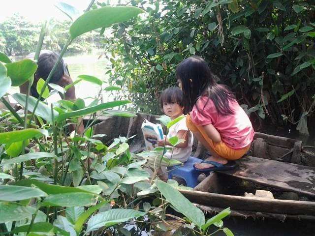 Hai chị em bé Dẻo hàng ngày chỉ biết chơi đùa quanh quẩn ơ cái cù lao trên sông Đồng Nai.