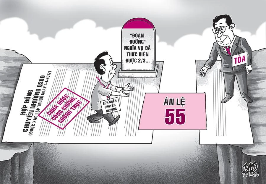 Trước những ảnh hưởng tiêu cực như vừa nêu, Án lệ số 55 có nội dung “hợp đồng chuyển nhượng quyền sử dụng đất (QSDĐ) được xác lập trước ngày 1-1-2017 chưa được công chứng, chứng thực nhưng bên nhận chuyển nhượng đã thực hiện 2/3 nghĩa vụ của mình. Trường hợp này, tòa án công nhận hiệu lực của hợp đồng” giúp áp dụng pháp luật thống nhất.
