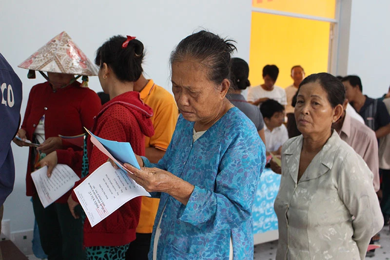 Nhiều cụ công, cụ bà đã lớn tuổi cũng không ngại khó đi bầu. Ảnh: LÊ THOA