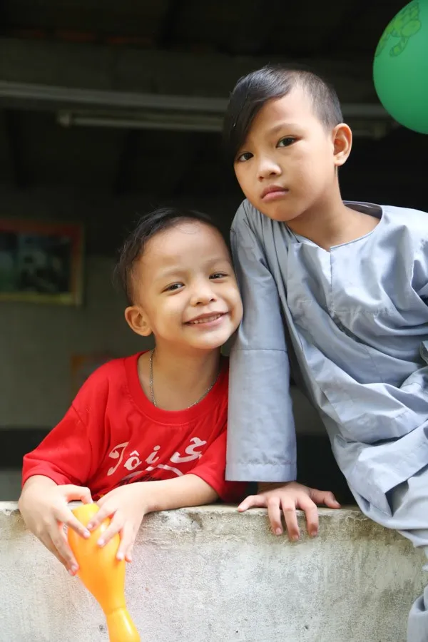 Những đứa bé đáng yêu ở chùa Pháp Bình được sư thầy cưu mang. Vị sư cô trong hình là sư cô của một ngôi chùa khác, vì khâm phục tấm lòng của thầy Nhơn nên mỗi ngày đều sang chùa Pháp Bình phụ việc chăm trẻ và cơm nước.