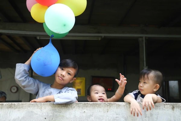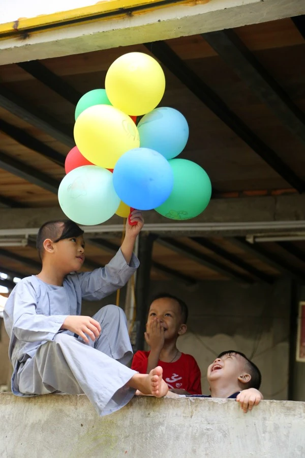 Niềm vui của lũ trẻ có khi chỉ là một chùm bóng nhiều màu sắc.