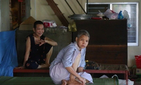 Chùa nghèo và vắng người nên một số người tâm thần đang bình phục cũng giúp thầy trông coi lũ trẻ nhỏ.
