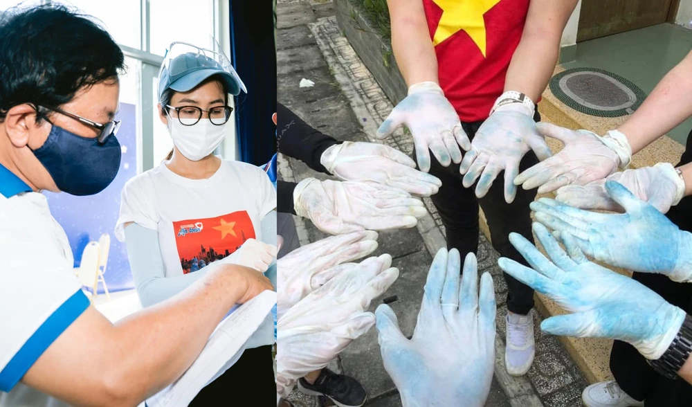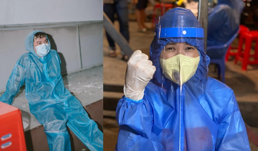 Gần 1 tháng qua, khi dịch COVID-19 bùng phát trở lại, Team tình nguyện viên nghệ sĩ của Nhà Văn hóa Thanh Niên đã xung phong vào tâm dịch. Rũ bỏ váy áo lộng lẫy, họ khoác lên mình bộ đồ bảo hộ hỗ trợ y bác sĩ tại các khu phong toả, bưng bê dọn dẹp…