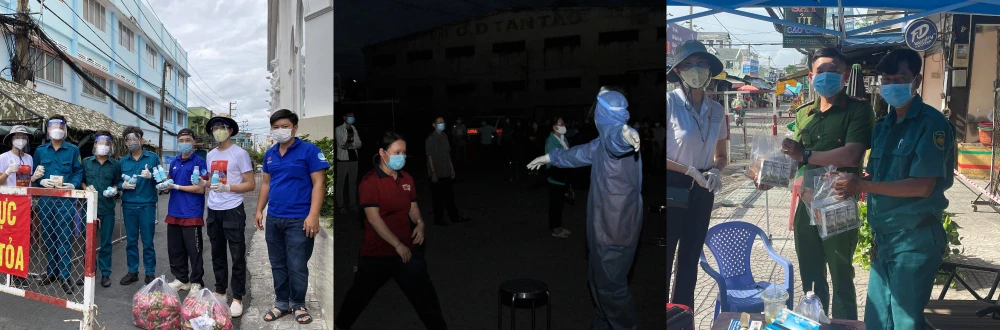 Chúng tôi hỗ trợ sinh viên dọn dẹp tại các ký túc xã sinh viên để làm khu cách ly tập trung, hỗ trợ đóng gói các phần săn sáng và chuyển đến y bác sĩ nhân viên bệnh viện Nhiệt Đới đang bị cách ly, thăm tặng quà cho tuyến đầu chống dịch…