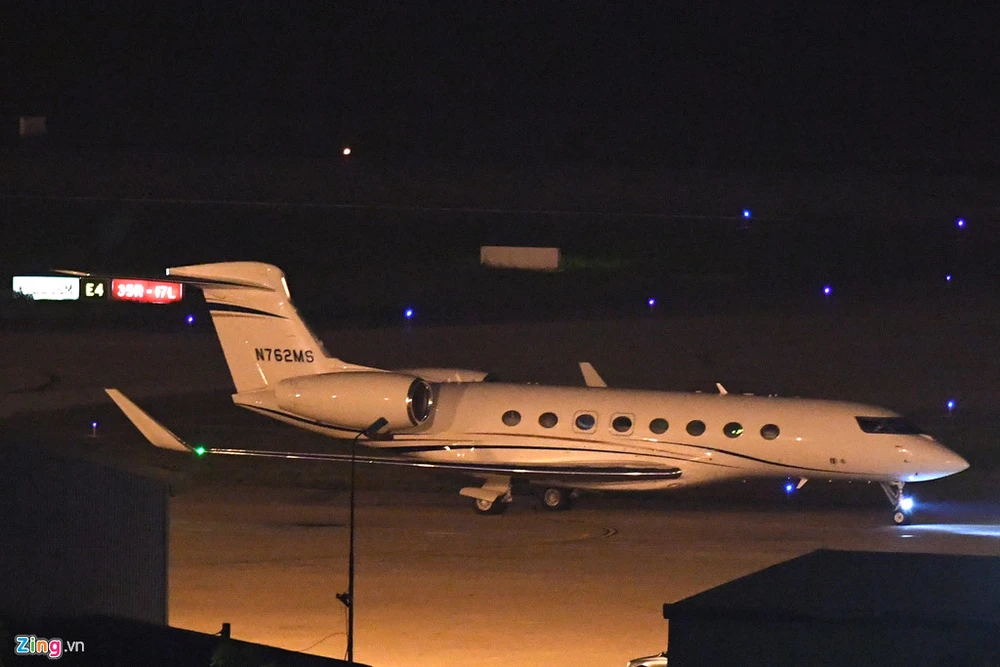 Chiếc máy bay mang số hiệu N762MS đậu ở sân bay quốc tế Đà Nẵng vào tối 3-11. (Ảnh: Zing.vn)