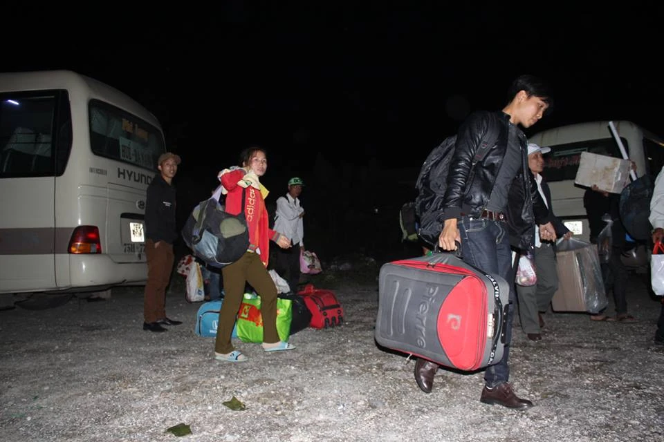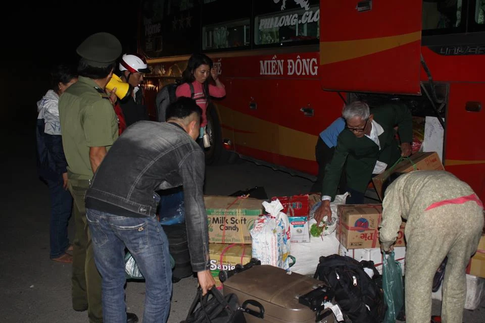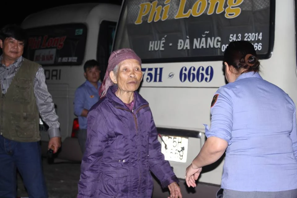 Hành khách được đưa đến ga Lăng Cô bằng ô tô. Ảnh: Nguyễn Tri