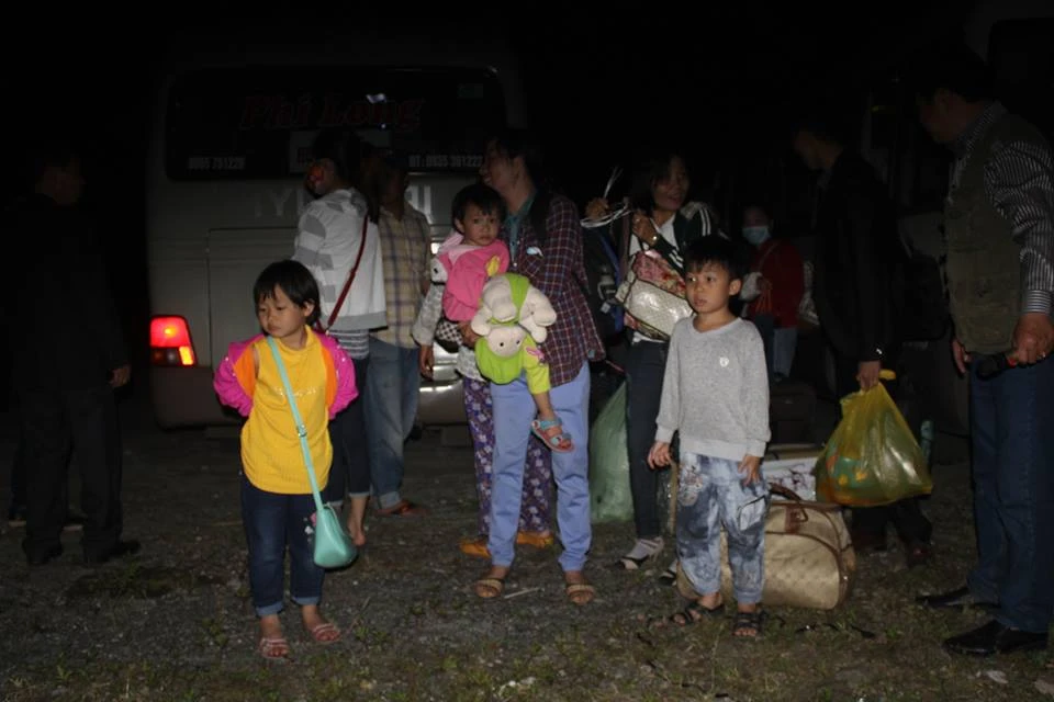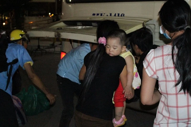 Nhiều hành khách là các em nhỏ phải mệt mỏi trong đêm cùng cha mẹ. Ảnh: Nguyễn Tri