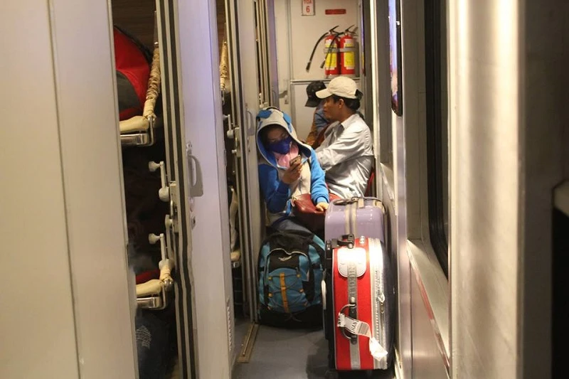 Nhiều hành khách nước ngoài trên chuyến tàu SE2. Ảnh: Nguyễn Do