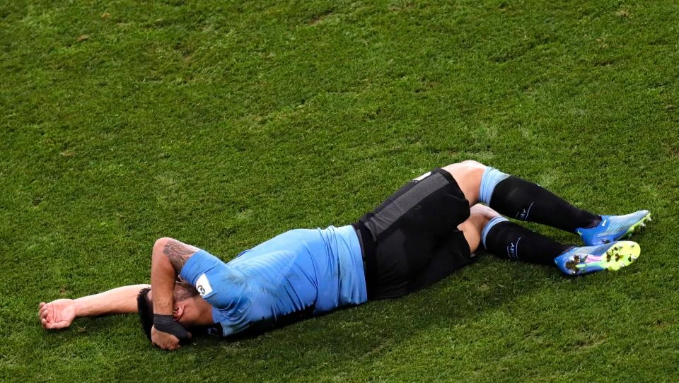 Suarez ôm đầu nằm sân trận gặp Bồ Đào Nha.