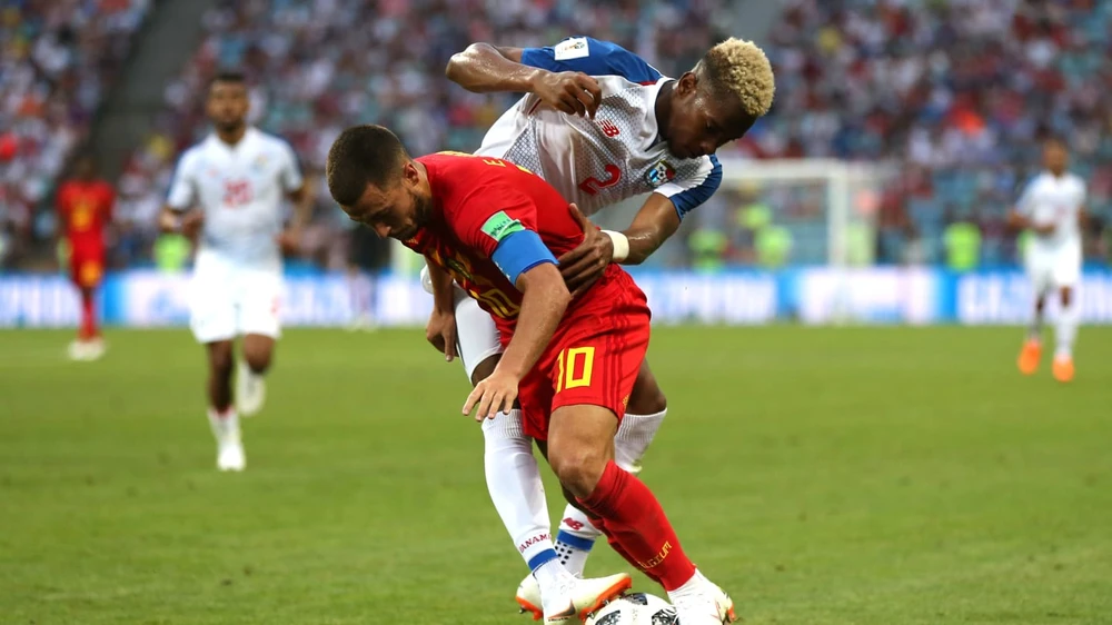 Tiền đạo CLB Chealsea, Eden Hazard trở thành mục tiêu chơi xấu của Panama. ẢNH: FIFA