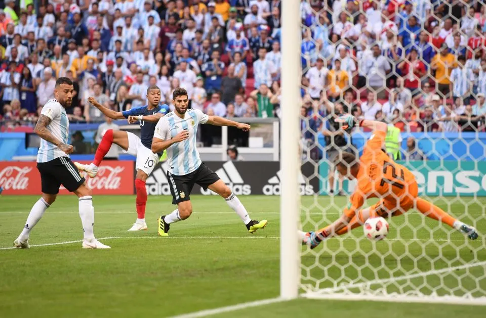 Griezmann mở tỉ số phút 13 sau quả sút 11 m. Sau đó Di Maria và Mercado lần lượt lập công đưa Argentina vượt lên dẫn 2-1.