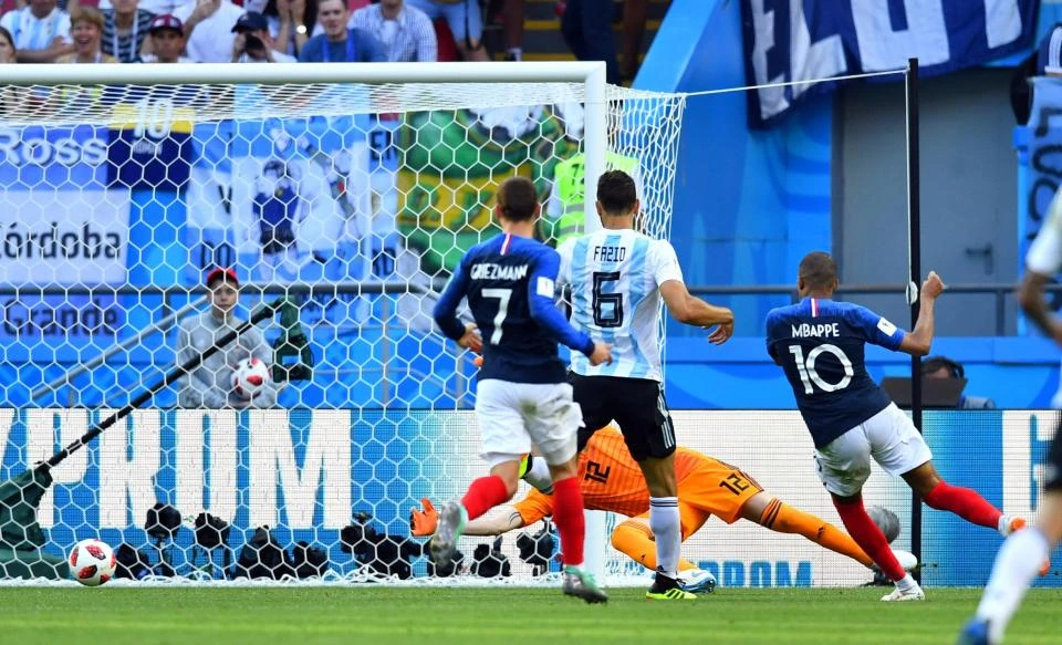 60 năm sau khi Pele tung hai pha dứt điểm đốt lưới Thụy Điển trận chung kết World Cup 1958, Mbappe với tốc độ kinh khủng cũng lập cú đúp, giúp Pháp vượt lên dẫn Argentina 4-2 khi trận đấu đang có tỉ số hòa 2-2.