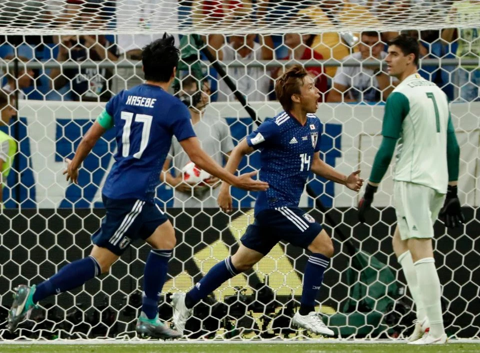 Takashi Inui ghi bàn nâng tỉ số lên 2-0 ở trận gặp Bỉ tại vòng 1/8.