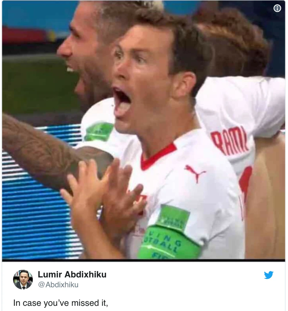 FIFA tuyên bố mở cuộc điều tra vụ kiện chống lại Xhaka và Shaqiri sau biểu hiện mang tính chính trị trên. Lichtsteiner chịu liên đới vì thể hiện tình đoàn kết với các đồng đội của mình ở trận thắng Serbia 2-1. Tất cả ba cầu thủ sẽ bị cấm thi đấu hai trận, cùng mức phạt tối thiểu 5.000 USD nếu bị kết tội khiêu khích trước đám đông.