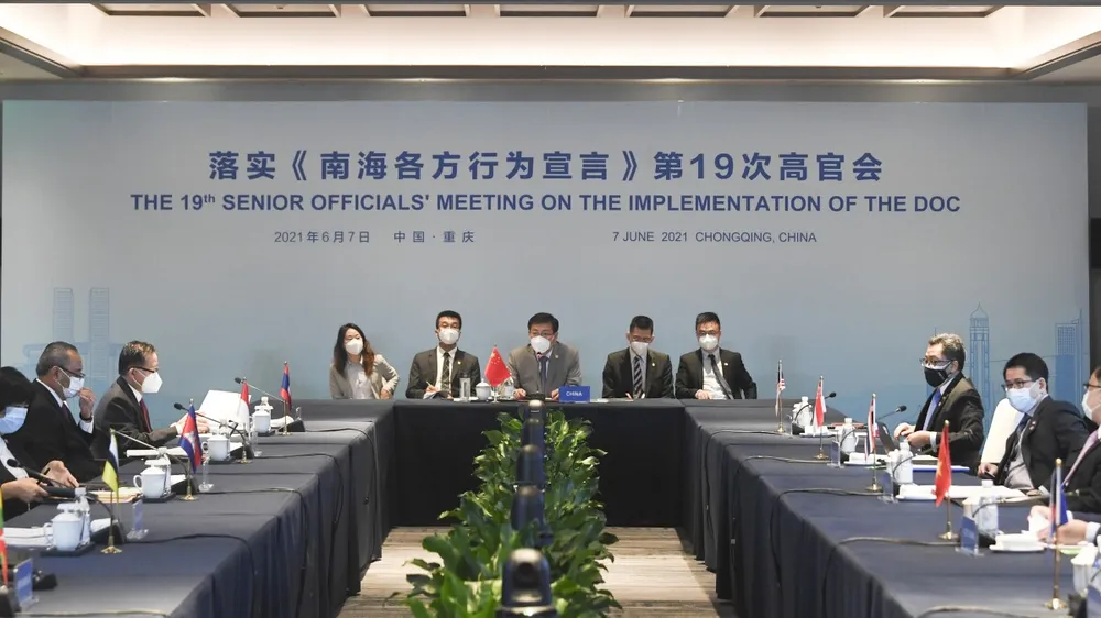 Phiên họp cấp cao lần thứ 19 về thực thi DOC được tổ chức tại Trùng Khánh (TQ) hôm 7-6-2021. Ảnh: GLOBAL TIMES
