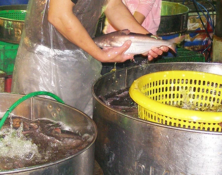 Cá tươi được bày bán ở chợ Bình Điền. Ảnh: TRẦN NGỌC