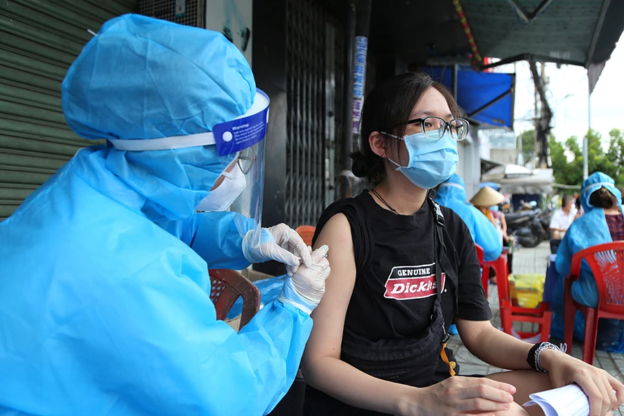 Tiêm vaccine phòng COVID-19 cho người dân tại quận Bình Thạnh, TP.HCM trong thời gian siết chặt giãn cách. Ảnh: HOÀNG GIANG