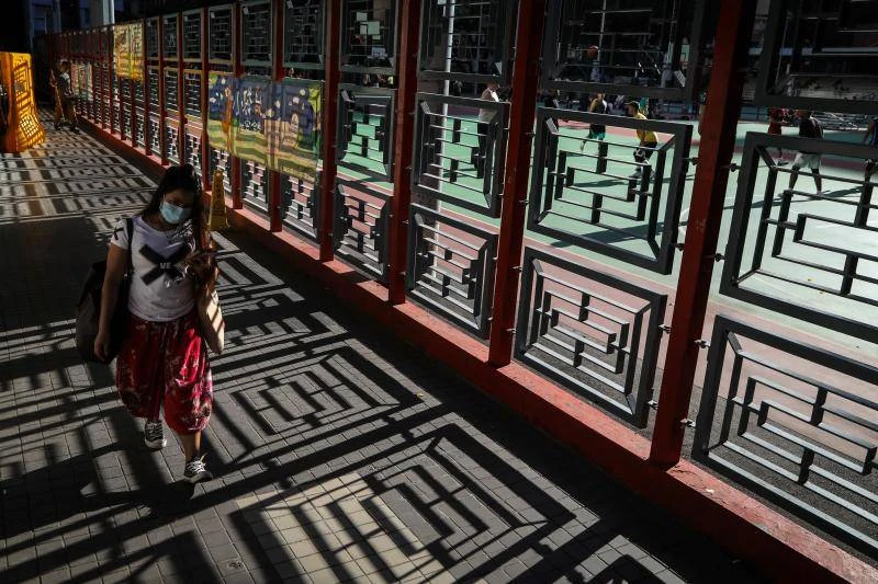 Một phụ nữ Hong Kong đi ngang qua một sân bóng công cộng. Ngày 1-3, Hong Kong xác nhận một ca mới nhiễm COVID-19. Ảnh: AFP