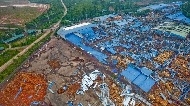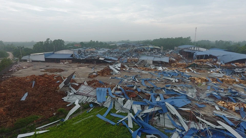 | Trước đó, vào chiều tối 10-6, lốc xoáy cùng mưa giông khiến khu nhà xưởng Công ty TNHH MTV Kiều Thi Junma tại xã Trung Mỹ, huyện Bình Xuyên, Vĩnh Phúc đổ sập. Lực lượng cứu hộ huy động hàng trăm cán bộ, chiến sỹ cùng nhiều phương tiện tìm kiếm các nạn nhân. Tại hiện trường, ba người được xác định thiệt mạng và nhiều người khác bị thương. |